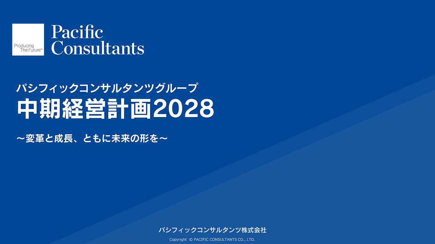 パシフィックコンサルタンツグループでは、グループビジョン2030の達成に向け、2025年10月をスタートとする「中期経営計画2028 ~変革と成長、ともに未来の形を~」を策定しています。