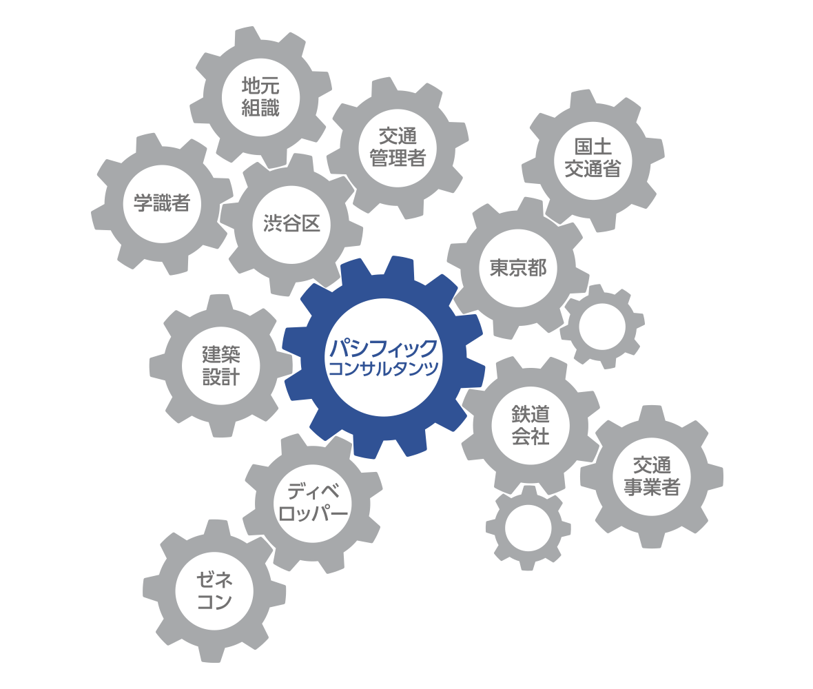 パシフィックコンサルタンツは、プロジェクトの推進を支える様々な関係者のパートナーであり、まち全体にとってより良い答えを模索する渋谷のパートナーでもあります。