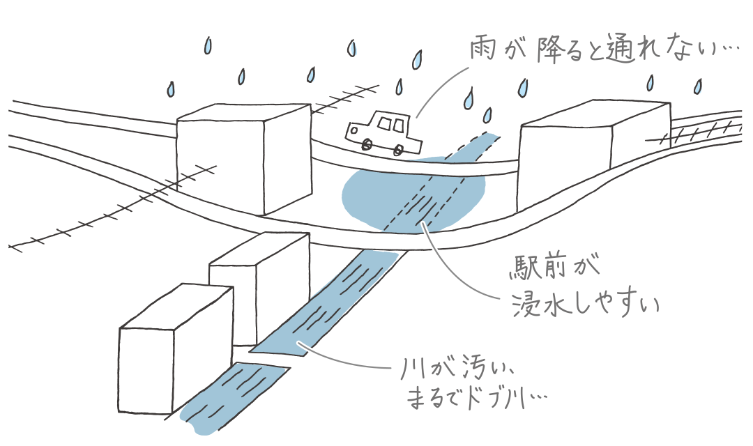 そのため、浸水被害が頻発し、川はまちの邪魔者に...