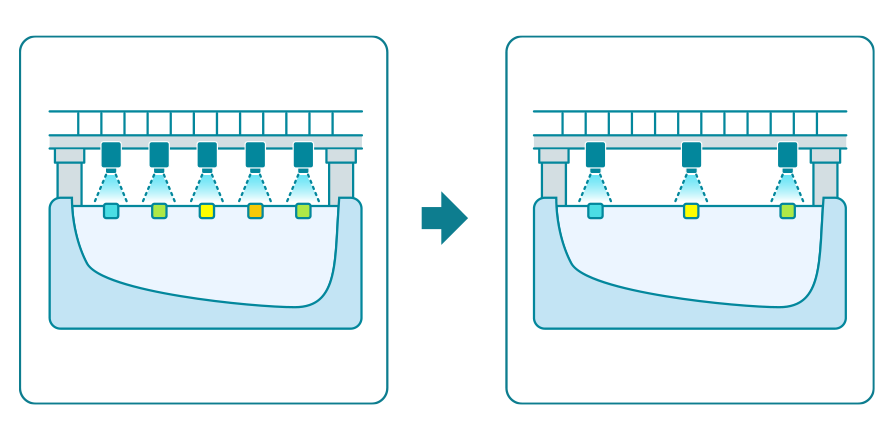 電波流速計を用いて河川流量を算出する場合は、河道の横断距離に応じて複数の機器を設置する必要があります。設置基数を増やすことで、流量算出の精度は向上しますが、コストが高くなる課題があります。DIEX-Flow RTシステムを導入することにより、必要最低限の基数で精度を確保することが可能となり、コストの縮減効果が大きく期待できます。