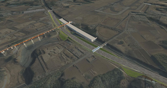 「B滑走路の延伸区域内を走る東関東自動車道は1日約3万台が通行する高速自動車国道です。現状の線形のまま滑走路下を通る延長約430mのトンネルにすることになりました。現状の通行にできる限り影響が及ばないようにという視点から、トンネル工事中に使用する仮設の迂回道路も、現在の本線とまったく同じ規格で用意することになりました。臨時の迂回道路とはいえ設計には高い精度が要求され、また航空部が計画する滑走路延伸工事に合わせたトンネル工事との細かい調整も必要でした」